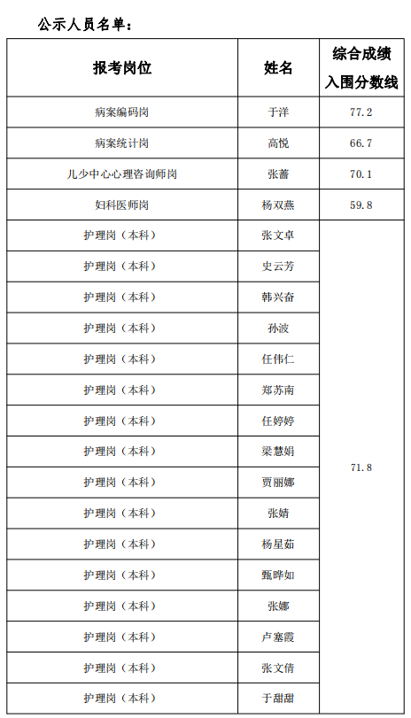 根據(jù)內(nèi)蒙古自治區(qū)第三醫(yī)院(精神衛(wèi)生中心)2021年度公開招聘合同制工作人員公告,經(jīng)筆試、資格復(fù)審、面試等程序,現(xiàn)對進(jìn)入體檢和考察范圍人員予以公示,個人綜合成績登錄報名考試系統(tǒng)查詢: