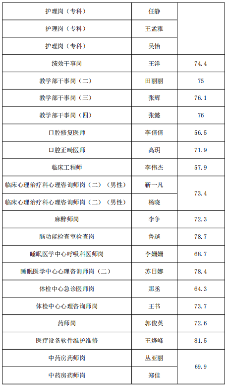 內(nèi)蒙古自治區(qū)第三醫(yī)院(精神衛(wèi)生中心)2021年度公開招聘合同制工作人員考試進(jìn)入體檢和考察范圍人員公示