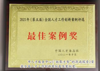 市人才服務(wù)中心《“數(shù)聚才智”的濟(jì)南探索》榮獲全國(guó)人才工作創(chuàng)新案例最佳案例獎(jiǎng)。