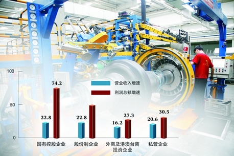數(shù)據(jù)顯示,10月份私營(yíng)企業(yè)利潤(rùn)同比增長(zhǎng)28.8%,增速較上月加快21個(gè)百分點(diǎn),連續(xù)兩個(gè)月回升。其中,有14個(gè)行業(yè)利潤(rùn)增速在20%以上,呈現(xiàn)良好發(fā)展勢(shì)頭。私營(yíng)企業(yè)對(duì)規(guī)模以上工業(yè)企業(yè)利潤(rùn)增長(zhǎng)的貢獻(xiàn)率為42.7%,較上月提高27.6個(gè)百分點(diǎn)。